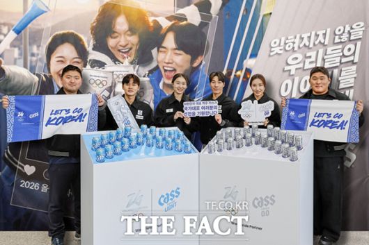 [더팩트ㅣ박헌우 기자] 2026 밀라노·코르티나담페초 동계올림픽 공식 파트너 카스가 20일 충북 진천 국가대표선수촌에서 '카스 0.0 응원 부스'를 운영한 가운데 대한민국 양궁 남자 국가대표 김우진 선수와 근대 5종 남자 국가대표 전웅태 선수, 쇼트트랙 여자 국가대표 최민정 선수, 쇼트트랙 남자 국가대표 황대헌 선수, 쇼트트랙 여자 국가대표 김길리 선수, 대한민국 유도 남자 국가대표 김민종 선수(왼쪽부터)가 현장에 마련된 포토존 앞에서 기념촬영을 하고 있다.