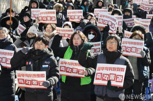 [서울=뉴스핌] 양윤모 기자 = 비정규직 차별 해소, 실질임금 인상, 공공성 강화 등을 요구하는 '민주노총 공공부문 비정규직노동자 결의대회'가 21일 오후 서울 종로구 청와대 사랑채옆에서 개최 되었다.  2026.01.21 yym58@newspim.com