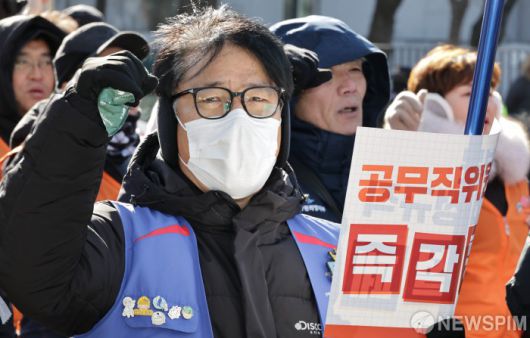 [서울=뉴스핌] 양윤모 기자 = 비정규직 차별 해소, 실질임금 인상, 공공성 강화 등을 요구하는 '민주노총 공공부문 비정규직노동자 결의대회'가 21일 오후 서울 종로구 청와대 사랑채옆에서 개최 되었다.  2026.01.21 yym58@newspim.com