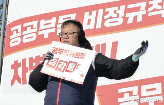 [서울=뉴스핌] 양윤모 기자 = 비정규직 차별 해소, 실질임금 인상, 공공성 강화 등을 요구하는 '민주노총 공공부문 비정규직노동자 결의대회'가 21일 오후 서울 종로구 청와대 사랑채옆에서 개최 되었다. 2026.01.21 yym58@newspim.com