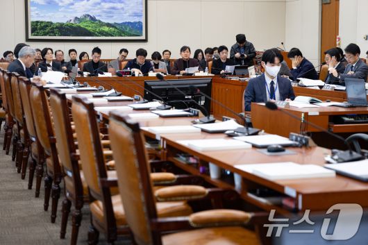 (서울=뉴스1) 유승관 기자 = 21일 서울 여의도 국회에서 국민의힘 의원들이 불참한 가운데 제431회 국회(임시회) 기후에너지환경노동위원회의 노동 형태 변화에 따른 노동약자 및 일하는 사람 보호 관련 법률안에 대한 입법공청회가 열리고 있다. 2026.1.21/뉴스1