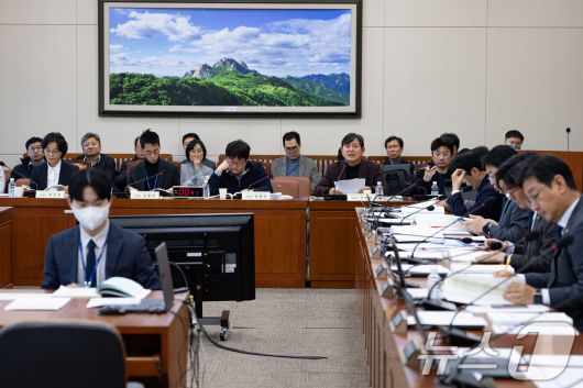 (서울=뉴스1) 유승관 기자 = 신언직 노동공제연합 사단법인 풀빵 노동공제학습원장이 21일 서울 여의도 국회에서 열린 제431회 국회(임시회) 기후에너지환경노동위원회의 노동 형태 변화에 따른 노동약자 및 일하는 사람 보호 관련 법률안에 대한 입법공청회에서 진술하고 있다. 2026.1.21/뉴스1