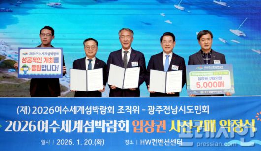 (재)2026여수세계섬박람회조직위원회는 광주전남시도민회와 '2026여수세계섬박람회 입장권 5000매 구매약정'을 체결했다고 21일 밝혔다.