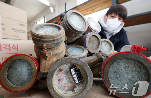 (수원=뉴스1) 김영운 기자 = 강력한 한파가 계속되고 있는 21일 경기 수원시 장안구 파장정수장 자재창고에서 수원시상수도사업소 직원이 추위에 동파된 수도계량기를 정리하고 있다. 2026.1.21/뉴스1kkyu6103@news1.krCopyright ⓒ 뉴스1. All rights reserved. 무단 전재 및 재배포, AI학습 이용 금지.