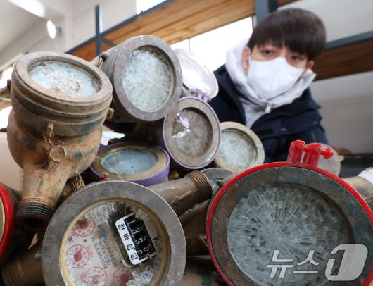 (수원=뉴스1) 김영운 기자 = 강력한 한파가 계속되고 있는 21일 경기 수원시 장안구 파장정수장 자재창고에서 수원시상수도사업소 직원이 추위에 동파된 수도계량기를 정리하고 있다. 2026.1.21/뉴스1kkyu6103@news1.krCopyright ⓒ 뉴스1. All rights reserved. 무단 전재 및 재배포, AI학습 이용 금지.