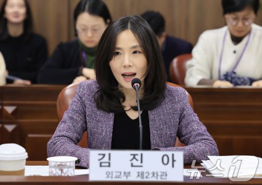 (서울=뉴스1) 임세영 기자 = 김진아 외교부 2차관이 21일 서울 종로구 외교부 청사에서 열린 제12차 무상개발협력전략회의에서 모두발언을 하고 있다. 2026.1.21/뉴스1