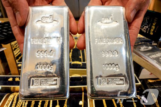 (서울=뉴스1) 이호윤 기자 = 도널드 트럼프 미국 대통령이 그린란드 확보를 위해 유럽 국가들에 대한 추가 관세 부과를 시사하자 금과 은 가격이 사상 최고 수준으로 치솟은 21일 서울 종로구 한 금은방에서 직원이 실버바를 정리하고 있다. 2026.1.21/뉴스1256@news1.krCopyright ⓒ 뉴스1. All rights reserved. 무단 전재 및 재배포, AI학습 이용 금지.