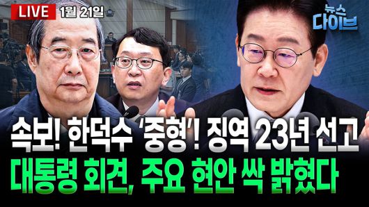 출연: 장윤선 정치전문기자, 김정환 변호사, 김규현 변호사, 김남일 한겨레 정치팀 기자, 진행: 고현준. 한덕수 징역 23년 선고 법정구속...‘12.3 계엄 = 내란’ 첫 법적 판단 / 이재명 대통령, 2026년 신년 기자회견... 주요 메시지는? / “윤석열에 은혜 갚아라“ 신천지, 국힘 당원 집단 가입 의혹 / ‘이재명 지사에 분노’ 이만희 육성 공개... 윤석열 언급도. 오늘 (1월 21일) 뉴스 다이브 많은 시청바랍니다.