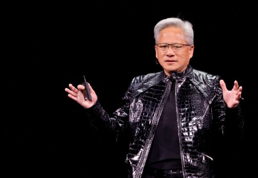 젠슨 황 엔비디아 최고경영자(CEO)가 5일(현지시간) 미국 네바다주 라스베이거스에서 연설을 하고 있다. 라스베이거스/로이터연합뉴스 |
