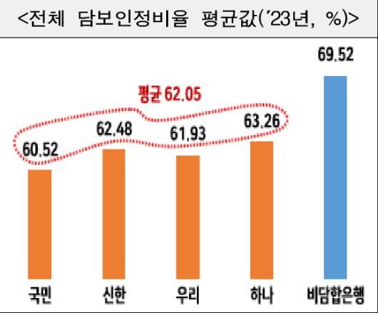 각 은행은 경쟁 은행보다 LTV가 높으면 이를 낮추고, 낮으면 상향 조정하는 방식으로 LTV 수준을 유사하게 맞췄다. 2023년 기준 4대 은행의 평균 LTV는 비담합 은행 평균보다 7.5%포인트(p) 낮았다. 공장·토지 등 비주택 부동산 LTV는 8.8%p 차이 났다.