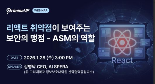 웨비나 사전 등록은 Criminal IP 공식 홈페이지와 X(트위터), 페이스북을 통해 가능하며, 등록자에게는 별도로 접속 링크가 안내될 예정이다. AI스페라는 위협 인텔리전스(TI)와 ASM을 기반으로 실제 보안 사례와 실무 적용 관점 중심의 웨비나를 지속적으로 진행하고 있다.