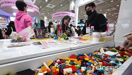 국내 최대 규모의 교육·에듀테크 전문 전시 제23회 대한민국 교육박람회가 21일 서울 강남구 코엑스에서 열렸다. 참관객이 퓨너스의 피지컬 컴퓨팅 교구 '레고 에듀케이션 사이언스'를 살펴보고 있다. 이동근기자 foto@etnews.com [Copyright © 전자신문. 무단전재-재배포금지]