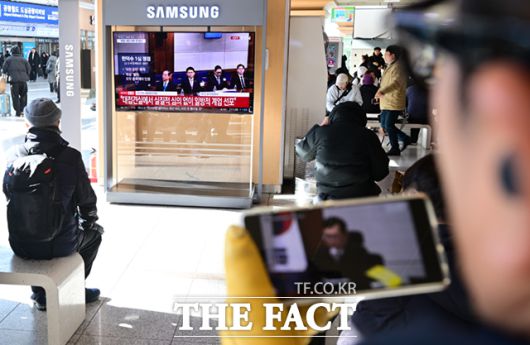 [더팩트ㅣ이새롬 기자] 12.3 비상계엄에 가담한 혐의로 재판에 넘겨진 한덕수 전 국무총리의 1심 선고가 21일 열린 가운데, 서울역 대합실에서 시민들이 생중계되는 방송을 지켜보고 있다.