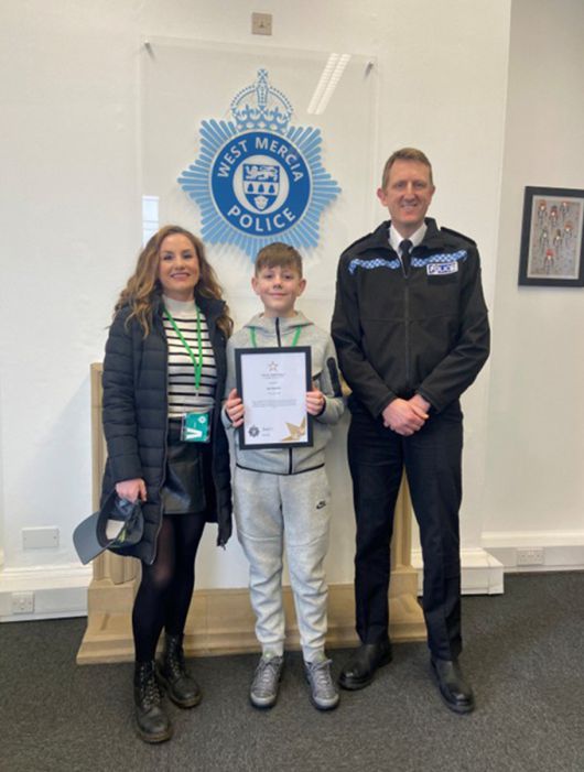 운전 중 가속 페달을 밟은 채 의식을 잃은 엄마를 구한 12살 소년 잭 하웰스(가운데)가 영국 경찰 표창을 받았다. /사진=영국 웨스트머시아 경찰 |