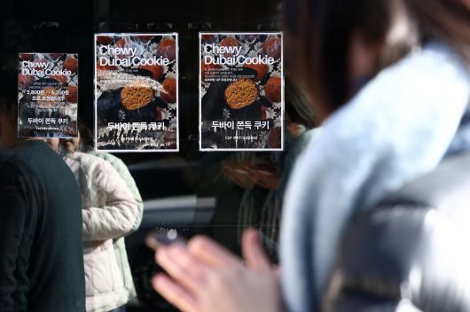 '두바이 쫀득 쿠키(두쫀쿠)' 열풍이 계속되는 20일 오후 서울 종로구 한 제과점에서 시민들이 두쫀쿠를 구매하기 위해 줄을 서 있다./뉴스1 |