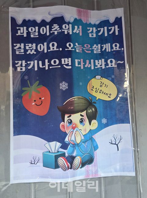 [이데일리 석지헌 정윤지 김현재 기자] “과일이 추워서 감기가 걸렸어요. 오늘은 쉴게요. 감기 나으면 다시 봐요~”