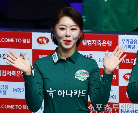 [고양(경기)=스포츠투데이 팽현준 기자] 21일 경기도 고양 킨텍스 PBA스타디움에서 열린 '웰컴저축은행 PBA 팀리그 2025-2026' 하나카드와 SK렌터카의 챔피언결정전 5차전, 하나카드 김가영이 인사하고 있다. 2026.01.21. [스포츠투데이 팽현준 기자 sports@stoo.com]