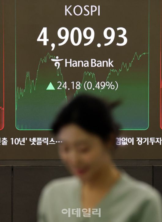 이날 코스피는 전 거래일 대비 24.18(0.49%)포인트 상승한 4,909.93에 코스닥은 전 거래일 대비 25.08(2.57%)포인트 하락한 951.29를 기록했다.