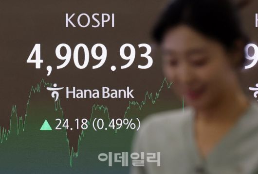 이날 코스피는 전 거래일 대비 24.18(0.49%)포인트 상승한 4,909.93에 코스닥은 전 거래일 대비 25.08(2.57%)포인트 하락한 951.29를 기록했다.
