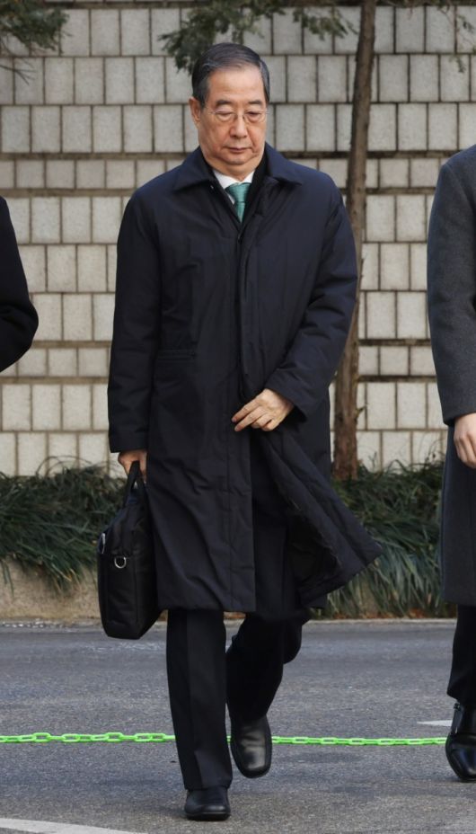 한덕수 전 국무총리가 21일 오후 서울 서초구 서울중앙지법에서 열린 내란 우두머리 방조, 내란 중요임무 종사 혐의 사건 1심 선고공판에 출석하고 있다. /사진=뉴스1 |