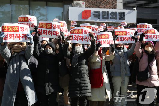 '위드후니' 대구·경북 도토리 모임과 한 전 대표 지지자 등 60여 명은 이날 국민의힘 대구시당 앞에서 집회를 열어 한 전 대표 징계 철회를 촉구했다.