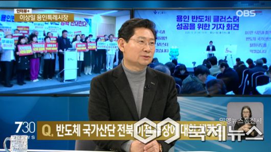 (용인=국제뉴스) 강정훈 기자 = 이상일 용인시장은 20일 저녁 OBS '뉴스 730'에 출연해 반도체 국가산단 지방이전에 대해 "새만금에는 새만금에 맞는 신규 투자를 하는 게 옳다. 용인 반도체 국가산단을 국가전략산업의 미래 경쟁력을 키우는 관점에서 봤으면 한다"고 했다.