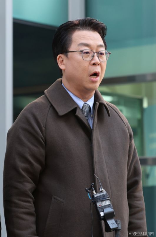[서울=뉴시스] 배훈식 기자 = 국민의힘 법률자문위원회 곽규택 위원장이 7일 오전 서울 종로구 서울경찰청 앞에서 이재명 대통령과 김민석 국무총리, 정성호 법무부 장관, 박철우 서울중앙지검장에 대한 서해 피살 공무원 사건 관련 직권남용혐의 고발 취지를 설명하고 있다. 2026.01.07. dahora83@newsis.com /사진=배훈식 |