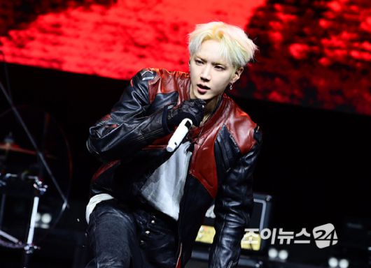 밴드 에이엠피 하유준이 21일 오후 서울 서대문구 예스24 원더로크홀에서 열린 AxMxP(에이엠피) 첫 번째 미니앨범 'Amplify My Way'(앰플리파이 마이 웨이) 프레스 쇼케이스에서 타이틀곡 '패스' 무대를 선보이고 있다. [사진=정소희 기자] |