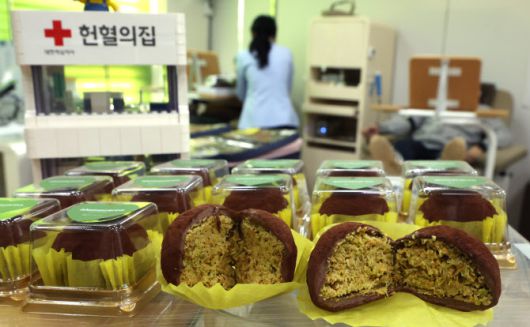 20일 오전 인천 연수구 대한적십자사 인천혈액원내 헌혈의 집에 전혈·혈소판 헌혈자에게 증정할 ‘두쫀쿠(두바이쫀득쿠키)’가 놓여 있다. (사진=뉴시스) |