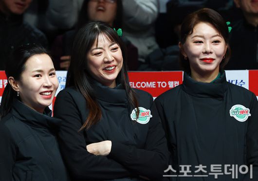 [고양(경기)=스포츠투데이 팽현준 기자] 21일 경기도 고양 킨텍스 PBA스타디움에서 열린 '웰컴저축은행 PBA 팀리그 2025-2026' 하나카드와 SK렌터카의 챔피언결정전 5차전, 하나카드 김진아, 사카이 아야코, 김가영이 미소를 짓고 있다. 2026.01.21. [스포츠투데이 팽현준 기자 sports@stoo.com]