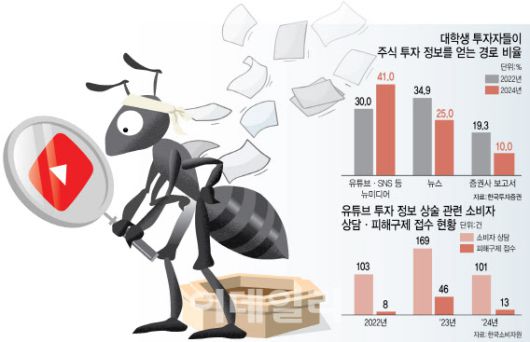 이같은 흐름은 개인투자자들이 검증되지 않은 정보의 유통 위험이 높은 유튜브 등으로 정보 채널이 변화하는 풍토를 야기한 한 원인으로도 꼽힌다. 한국투자증권이 대학생을 대상으로 진행한 설문에서도 소셜네트워크서비스(SNS)·유튜브를 주요 경로로 꼽은 비중은 2022년 30%에서 2024년 41%로 늘었다(이데일리 기사 참조: ).