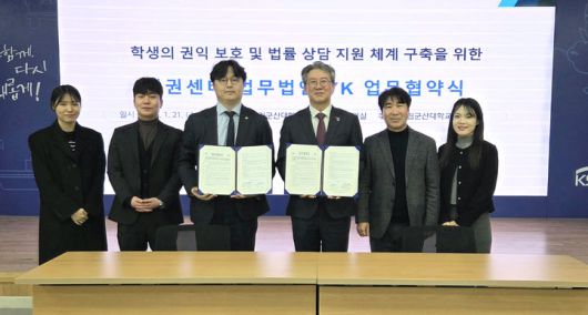 [군산=뉴시스]고석중 기자 = 국립군산대학교 인권센터는 21일 법무법인 YK와 학생 권익 보호 체계 구축을 위한 업무협약(MOU)을 체결했다고 밝혔다.