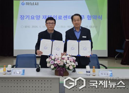 (하남=국제뉴스) 강정훈 기자 = 하남시보건소는 지역 의료기관인 제일의원과, 2026년 3월 27일 시행되는 「의료·요양 등 지역돌봄의 통합지원에 관한 법률」에 발맞춰 '장기요양 재택의료센터 시범사업' 추진을 위한 업무협약을 체결했다고 21일 밝혔다.