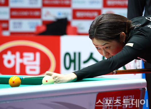 [고양(경기)=스포츠투데이 팽현준 기자] 21일 경기도 고양 킨텍스 PBA스타디움에서 열린 '웰컴저축은행 PBA 팀리그 2025-2026' 하나카드와 SK렌터카의 챔피언결정전 5차전, SK렌터카 히다 오리에가 여자복식에 출전하고 있다. 2026.01.21. [스포츠투데이 팽현준 기자 sports@stoo.com]