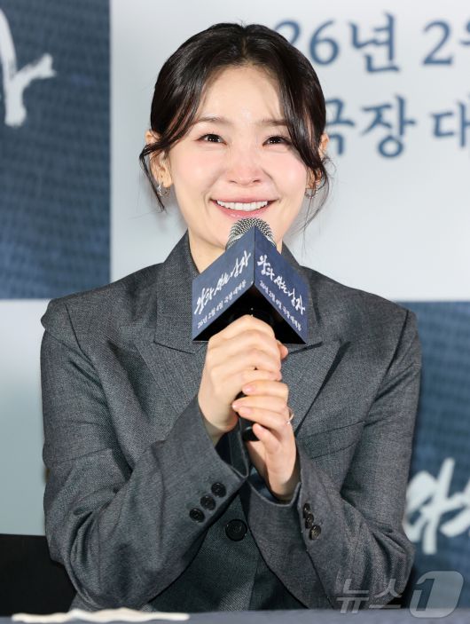(서울=뉴스1) 김진환 기자 = 배우 전미도가 21일 오후 서울 강남구 코엑스 메가박스점에서 열린 영화 ‘왕과 사는 남자’ 기자간담회에서 인사말을 하고 있다. '왕과 사는 남자'는 1457년 청령포, 마을의 부흥을 위해 유배지를 자처한 촌장과 왕위에서 쫓겨나 유배된 어린 선왕의 이야기로, 내달 4일 개봉한다. 2026.1.21/뉴스1