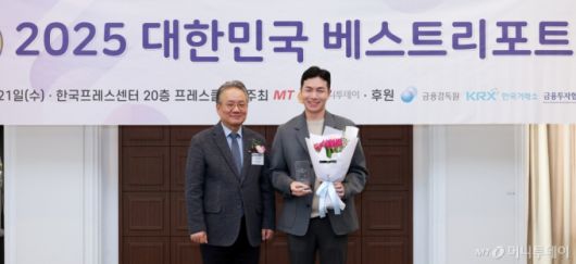 21일 서울 중구 프레스센터에서 열린 '2025 대한민국 베스트리포트' 시상식에서 강호병 머니투데이 대표(왼쪽)가 코넥스 부문 오현진 키움증권 연구원과 기념촬영을 하고 있다. 김창현 기자 chmt@mt.co.kr Copyright ⓒ 머니투데이 & mt.co.kr. 무단 전재 및 재배포, AI학습 이용 금지.