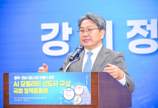강기정 광주광역시장이 지난해 9월 17일 국회에서 열린 'AI모빌리티 신도시 구상 국회 정책토론회'에 참석해 '광주 미래 모빌리티 특화도시 조성'을 주제로 발표하고 있다. /광주광역시 제공 |
