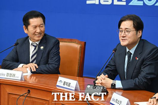 홍 수석도 이재명 대표 시절을 거론하며 "이 자리가 낯설지 않고 친정집에 온 것 같다. 정 대표는 여러가지로 저에게 좋은 분이고 잘 모셔야 한다고 생각한다"고 말했다.