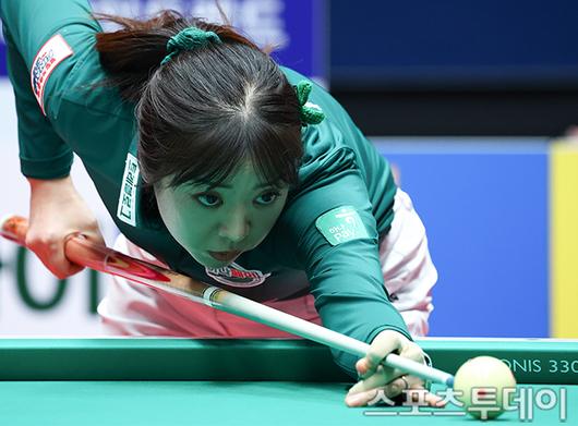 [고양(경기)=스포츠투데이 팽현준 기자] 21일 경기도 고양 킨텍스 PBA스타디움에서 열린 '웰컴저축은행 PBA 팀리그 2025-2026' 하나카드와 SK렌터카의 챔피언결정전 5차전, 하나카드 사카이 아야코가 공격하고 있다. 2026.01.21.