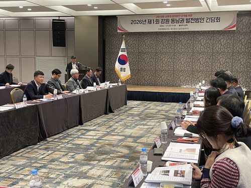 (삼척=연합뉴스) 유형재 기자 = 강원특별자치도 제2청사(글로벌본부)는 21일 삼척시에서 지역발전을 위한 소통 행보의 하나로 '2026년 제1회 강원 동남권 발전방안 간담회'를 개최했다.
