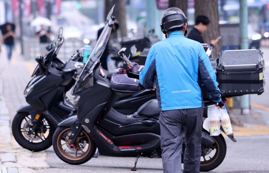 서울의 한 식당가에서 배달 노동자가 분주하게 움적이고 있다./뉴스1 |