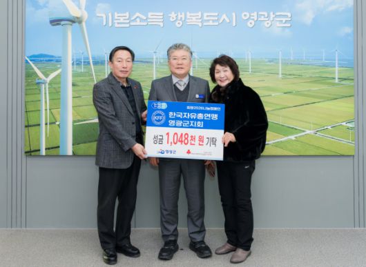 한국자유총연맹 영광군지회(회장 이응건)는 지난 20일 영광군청을 방문해 지역의 어려운 이웃을 돕기위해 성금 1,048천 원을 기탁했다. [사진=전라남도 영광군] |
