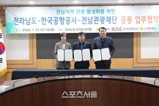[스포츠서울⎥조광태기자] 전라남도는 21일 한국공항공사, 전남관광재단과 함께 무안국제공항과 연계한 여행업계 지원 및 전남 관광 활성화 업무협약을 체결했다.