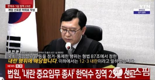 앞서 법원은 한 전 총리에 대한 1심 재판에서 국회와 중앙선관위 등을 점거·통제한 행위가 형법 제87조가 정한 '내란 행위'에 해당한다고 판시했다. 재판부는 이를 '12·3 내란'으로 규정하며 한 전 총리에게 징역 23년의 엄벌을 내렸다.