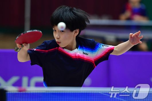 (포항=뉴스1) 최창호 기자 = 21일 경북 포항시 장량초등학교 체육관에서 열린 제1회 경북 포항동계전지훈련 탁구 스토브리그 대회에서 봉화 상운초등학교 김아영(3학년) 선수가 스메싱하고 있다. 김아영 선수는 지난해 제3회 유승민 전 IOC위원배 U12 전국탁구대회 1~2학년부 등에 출전해 3번의 우승을 차지한 유망주다. 2026.1.21/뉴스1