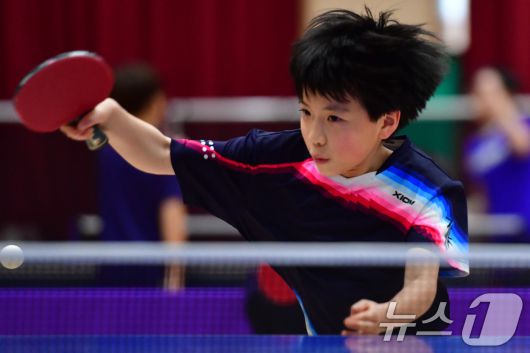(포항=뉴스1) 최창호 기자 = 21일 경북 포항시 장량초등학교 체육관에서 열린 제1회 경북 포항동계전지훈련 탁구 스토브리그 대회에서 봉화 상운초등학교 김아영(3학년) 선수가 공을 넘기고 있다. 김아영 선수는 지난해 제3회 유승민 전 IOC위원배 U12 전국탁구대회 1~2학년부 등에 출전해 3번의 우승을 차지한 유망주다. 2026.1.21/뉴스1