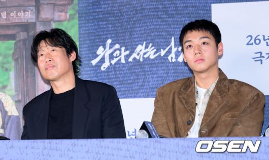 [OSEN=이대선 기자] 21일 오후 서울 강남구 메가박스 코엑스에서 영화 ‘왕과 사는 남자’ 언론시사회가 열렸다. '왕과 사는 남자'는 1457년 청령포, 마을의 부흥을 위해 유배지를 자처한 촌장과 왕위에서 쫓겨나 유배된 어린 선왕의 사연을 그린 작품으로 2월 4일 개봉한다. 배우 유해진, 박지훈이 취재진의 질문을 듣고 있다. 2026.01.21 /sunday@osen.co.kr