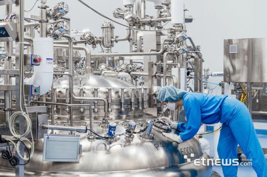 삼성바이오로직스 직원이 배양기를 점검하고 있다. |