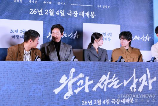 [스타데일리뉴스=박병준 기자] 박지훈, 유지태, 전미도, 김민이 21일 오후, 서울 강남구 메가박스 코엑스에서 열린 영화 '왕과 사는 남자' 언론시사회에 참석했다.