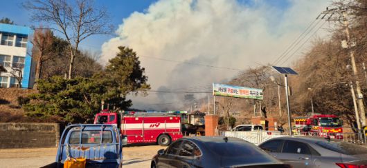 소방당국에 따르면 주택에서 발생한 불씨가 바람을 타고 산으로 옮겨붙으면서 산불로 확산됐다.